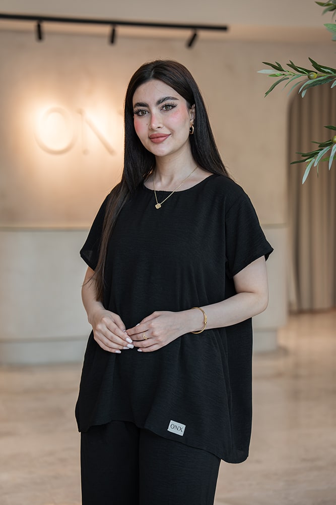 طقم داخلي بمقاس فري سايز مكون من قطعتين من قماش الكريب الناعم مثالي للبس تحت العباية