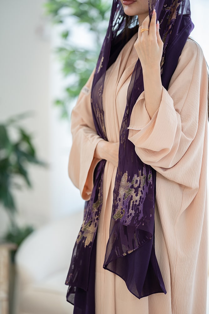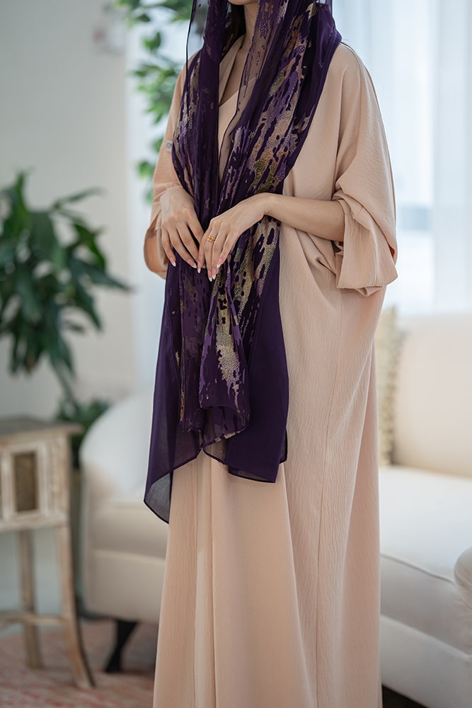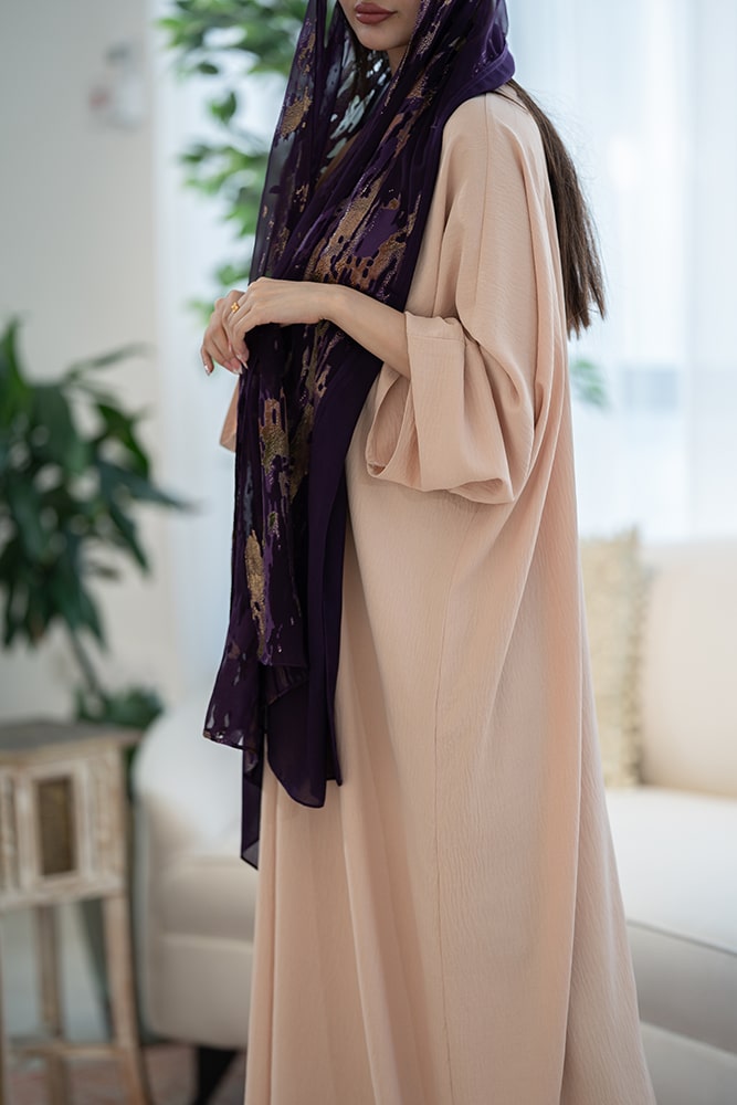 عباية بقماش كريب باللون الكريمي مع الطرحه