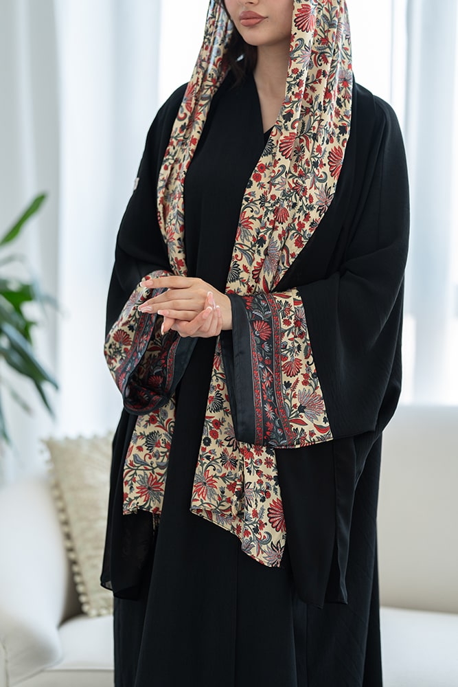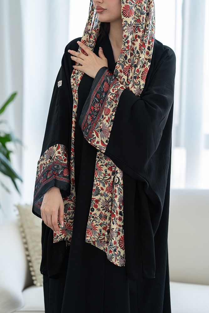 عباية كريب أسود مع تركيبه حرير في الاكمام و الطرحه