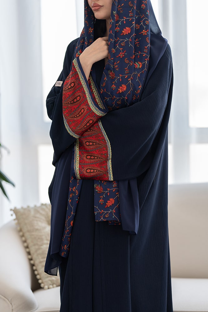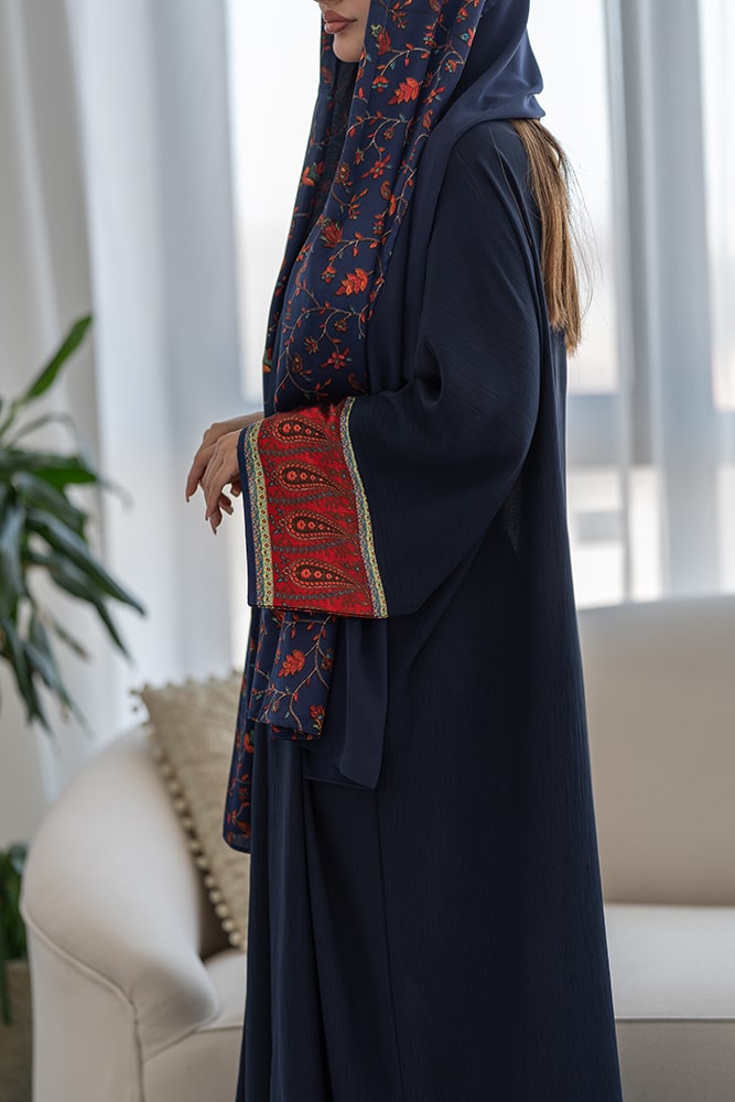 عباية كريب كحلي مع تركيبه حرير في الاكمام و الطرحه