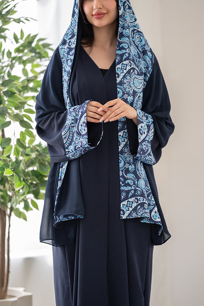 عباية كريب كحلي مع تركيبه حرير في الاكمام و الطرحه