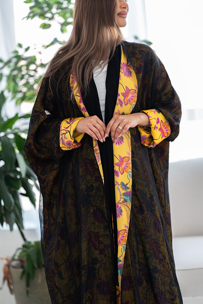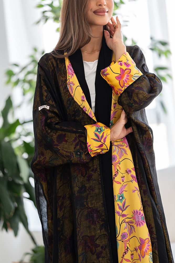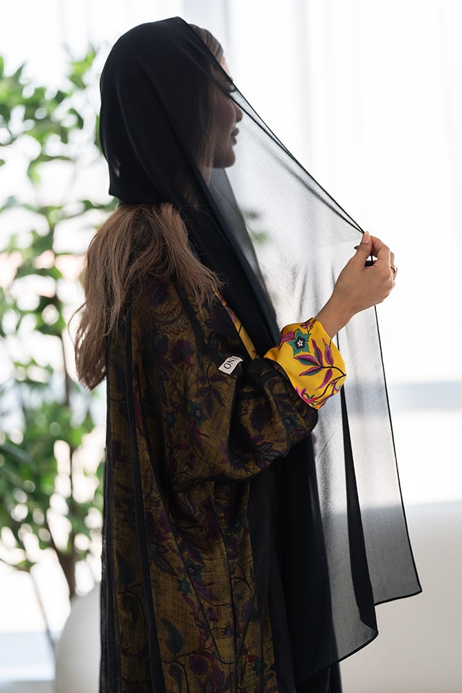 عباية بقماش لينين أسود مبطنه بقماش كريب ناعم مع طرحه