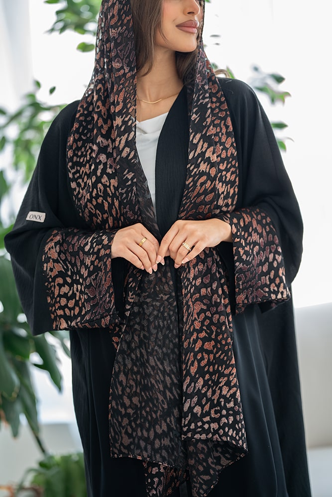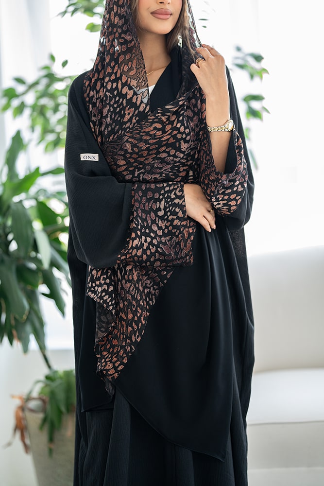 عباية بقماش كريب أسود مع تركيبة في الأكمام و الطرحه