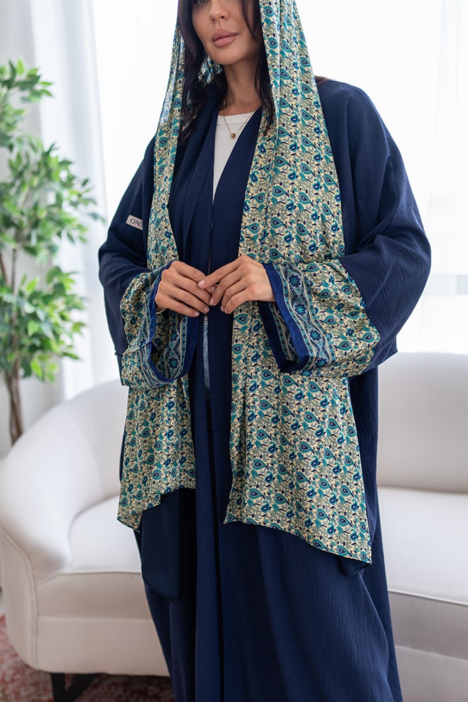 عباية كريب باللون الكحلي مع تركيبه حرير في الاكمام و الطرحه