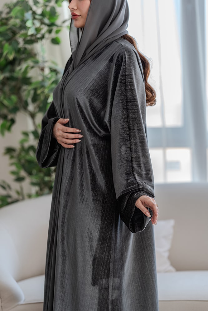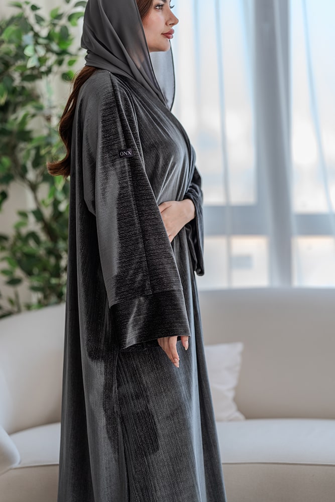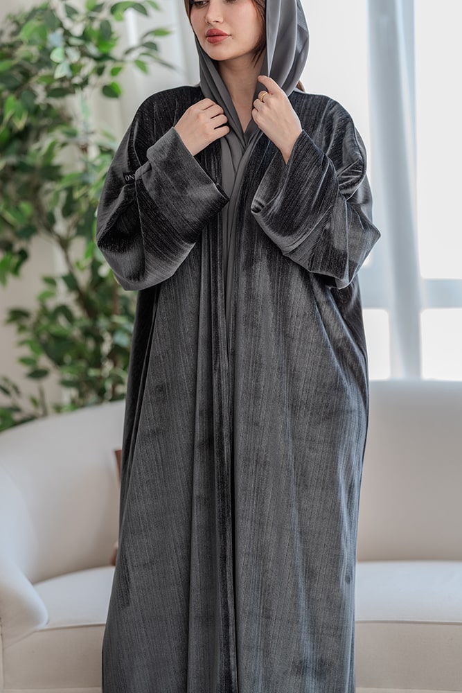 عباية بقماش مخمل رصاصي مع طرحه