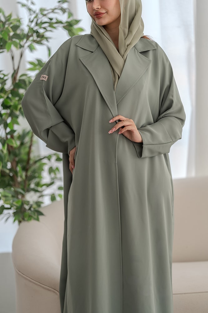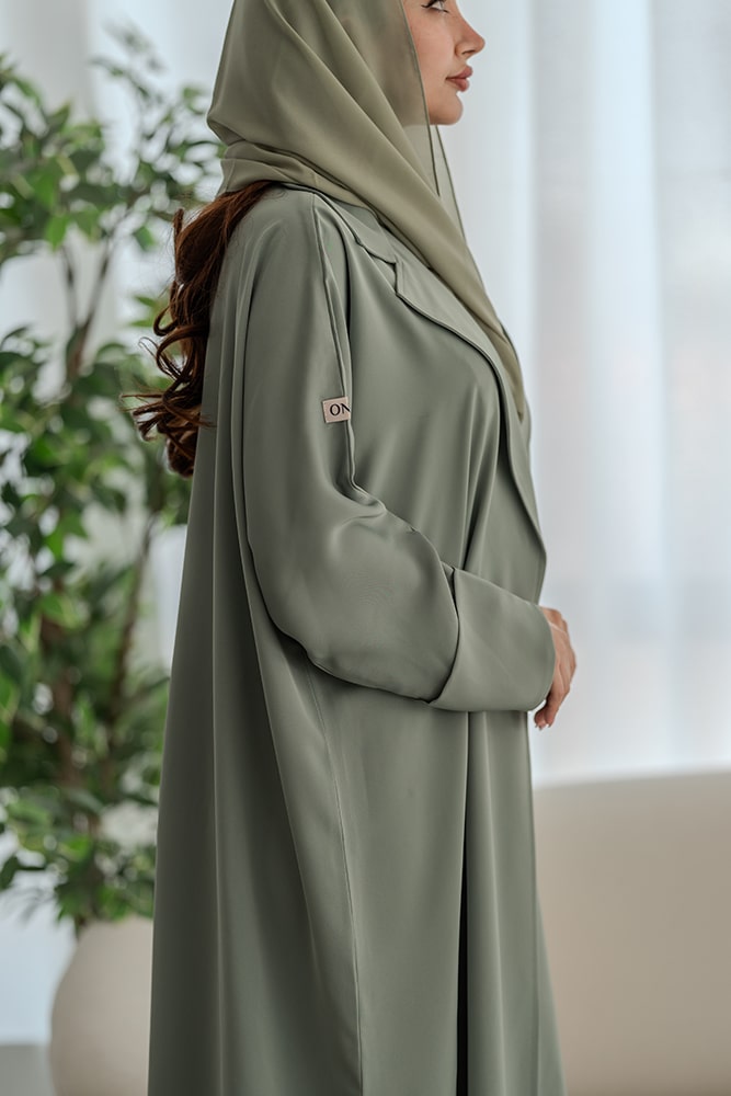 عباية بقماش ندى باللون الأخضر الفاتح مع الطرحه