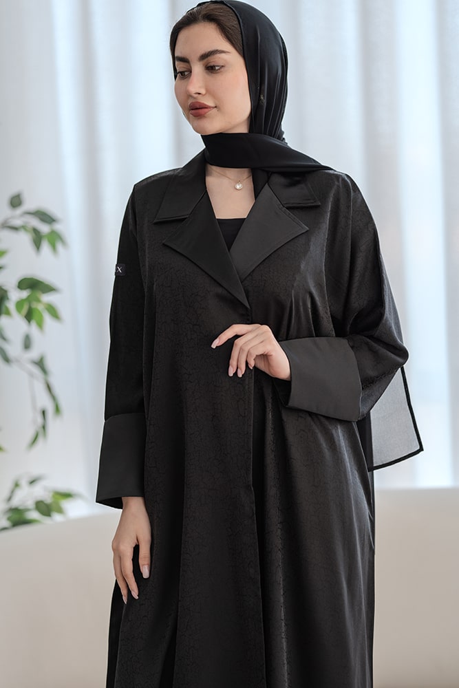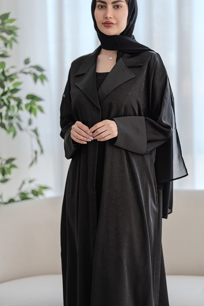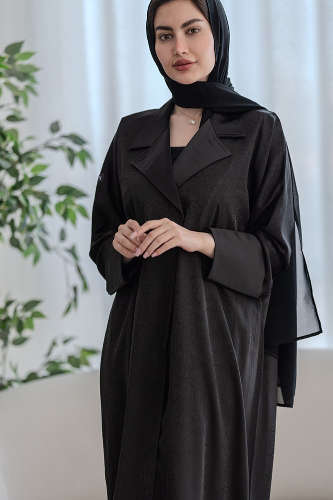 عباية بقماش جاكار أسود مع الطرحه