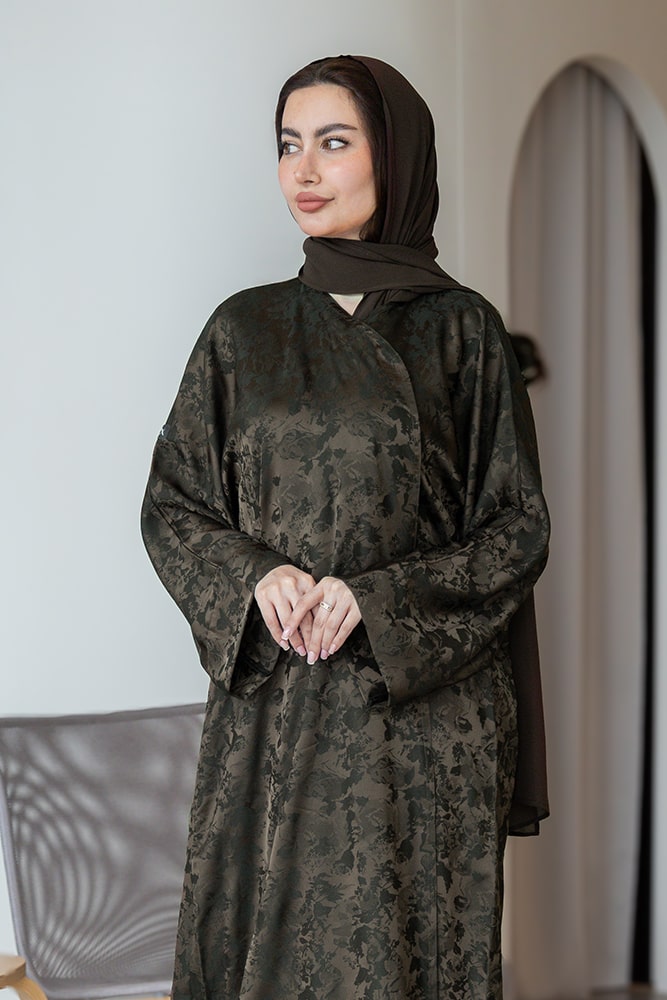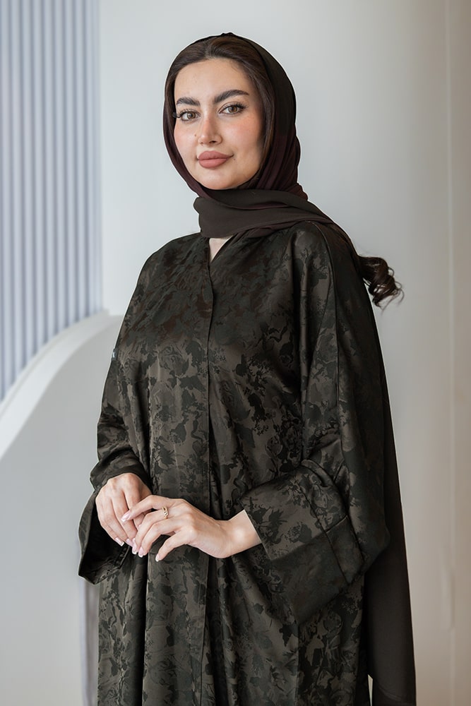 عبايه بقماش جاكار زيتي مع الطرحه
