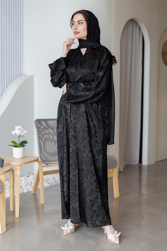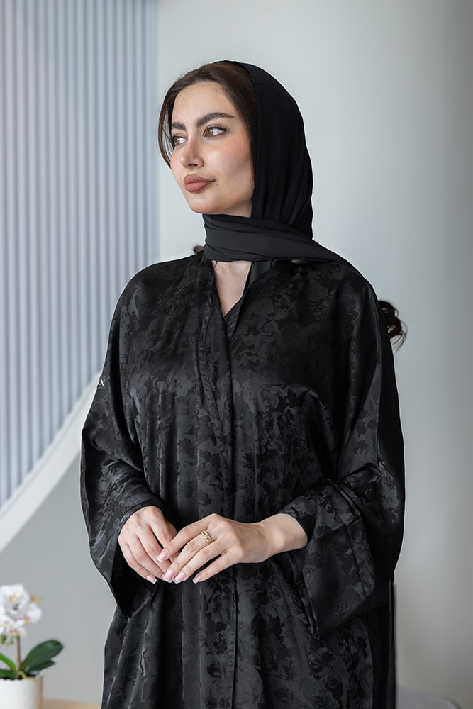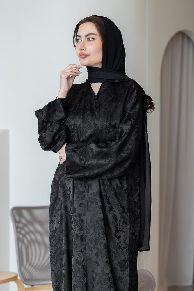 عبايه بقماش جاكار أسود مع الطرحه