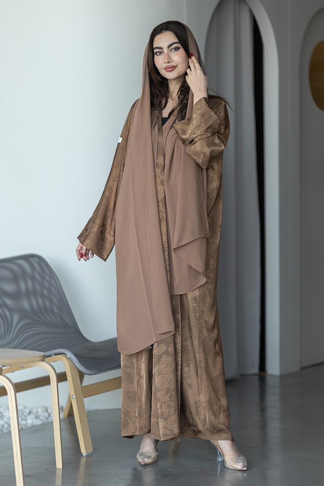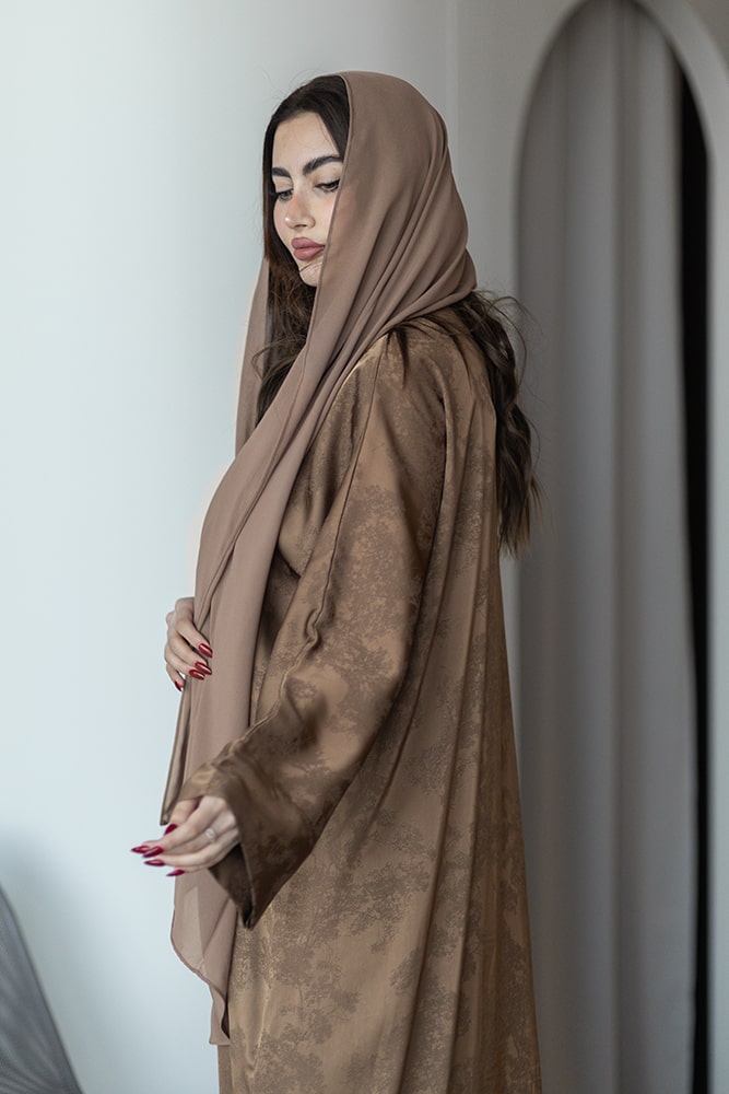 عبايه بقماش جاكار بني فاتح مع الطرحه