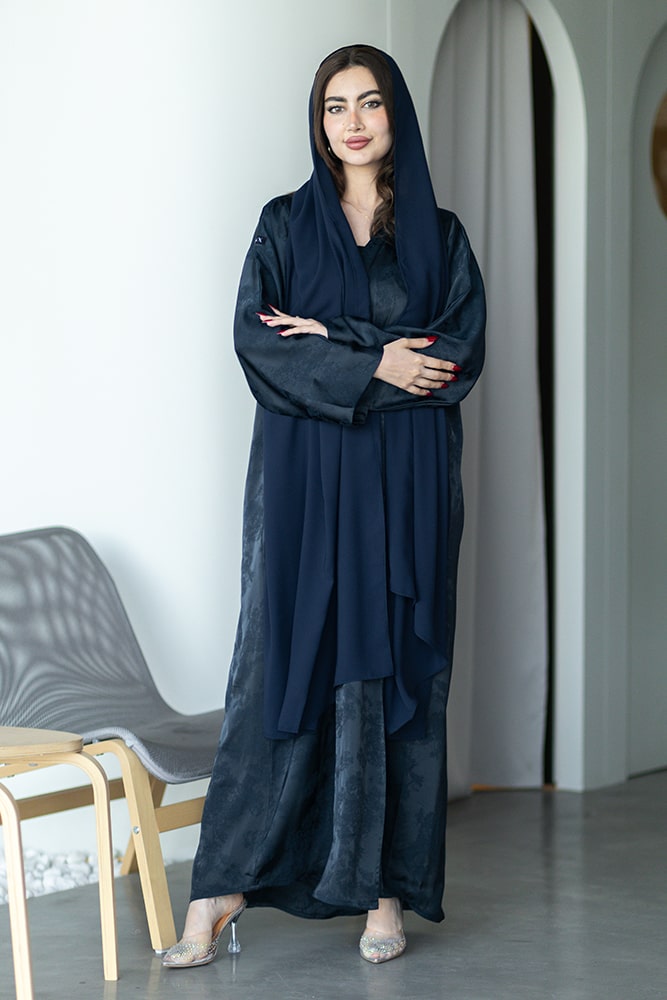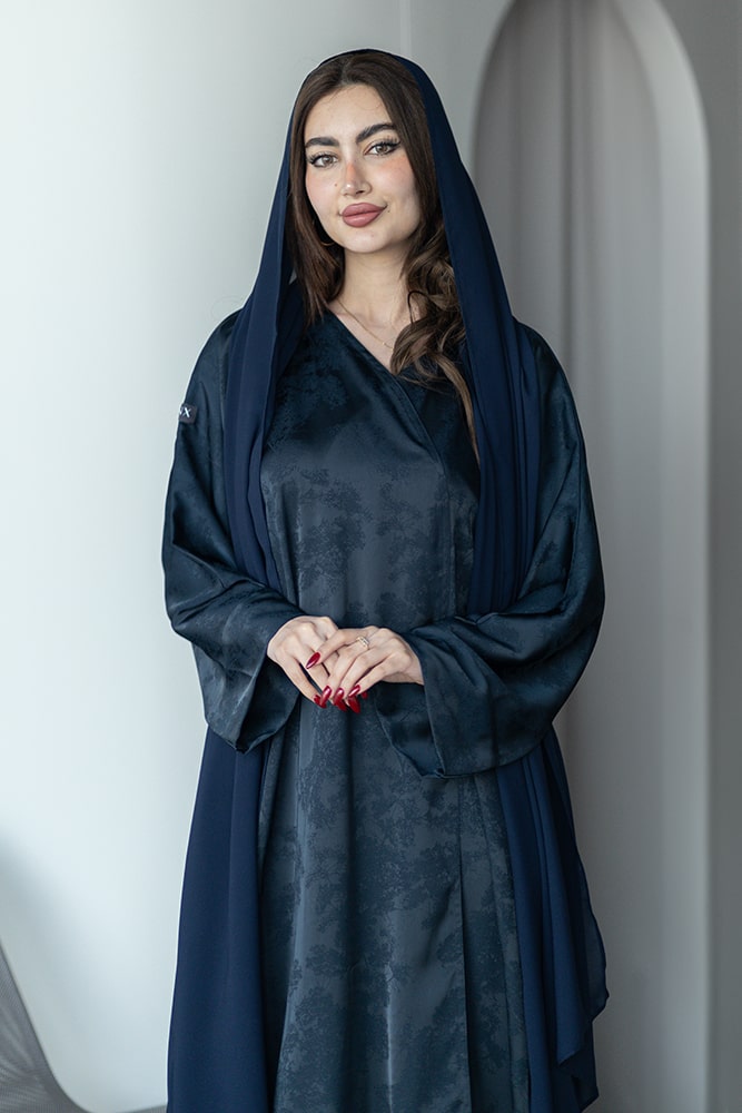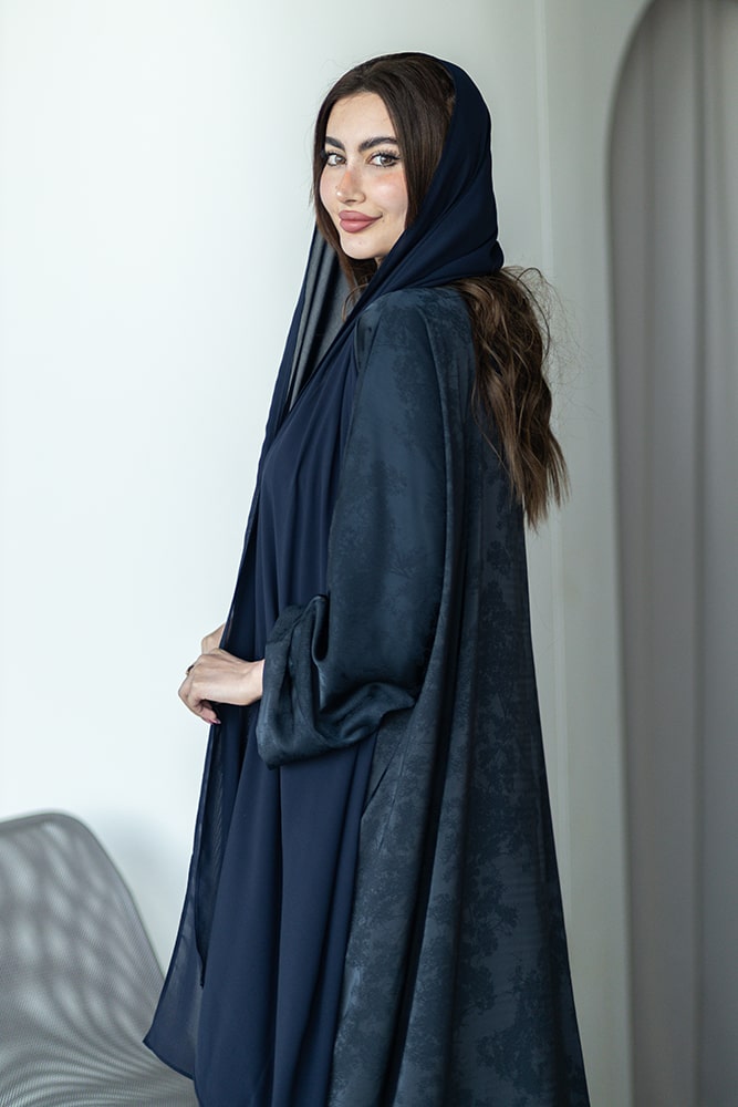 عبايه بقماش جاكار كحلي مع الطرحه