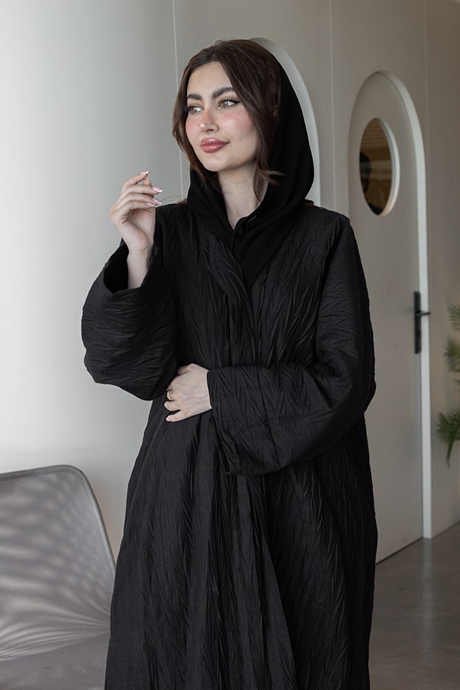 عباية بقماش لينين أسود مع طرحه