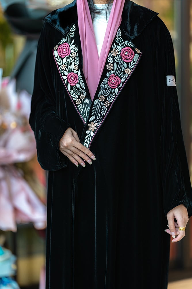عباية مخمل بتطريز على الياقه – ممكن تغيير نوع القماش