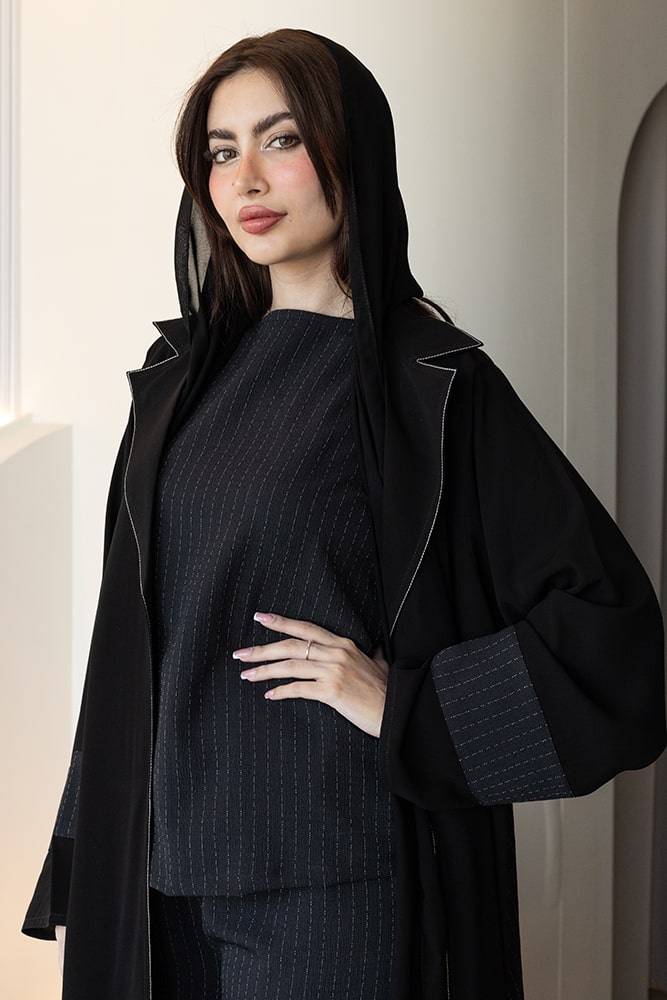 عباية بقماش كريب أسود مع طرحه