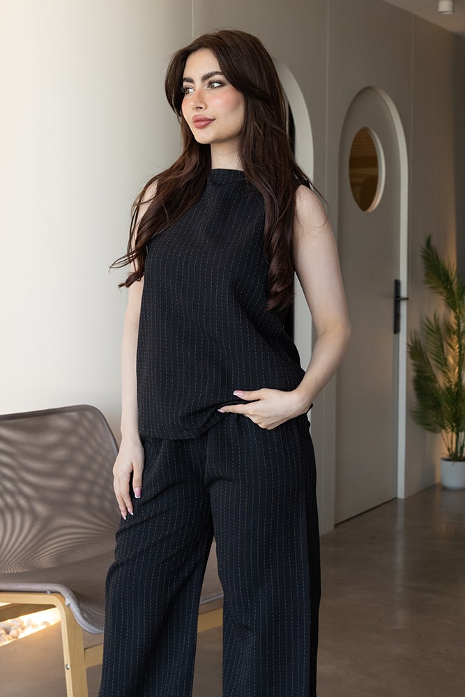 مع طقم توب وبنطلون