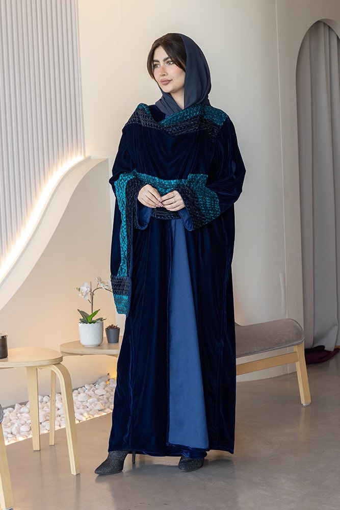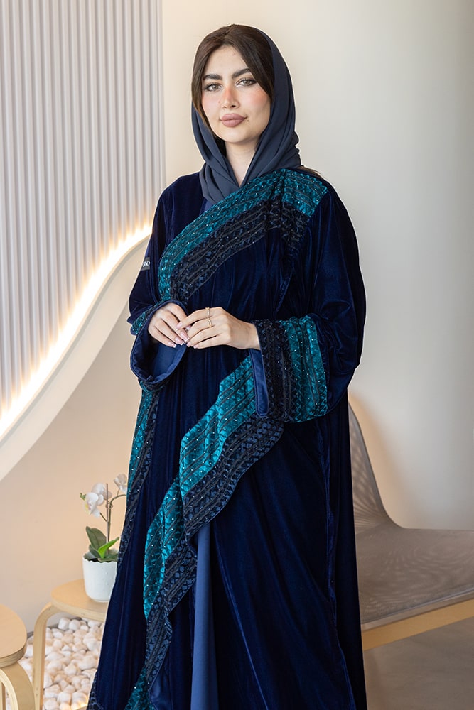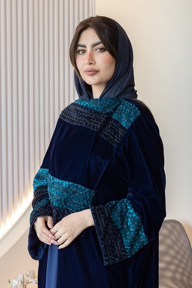 عباية الشال بقماش مخمل باللون الكحلي مع الطرحه