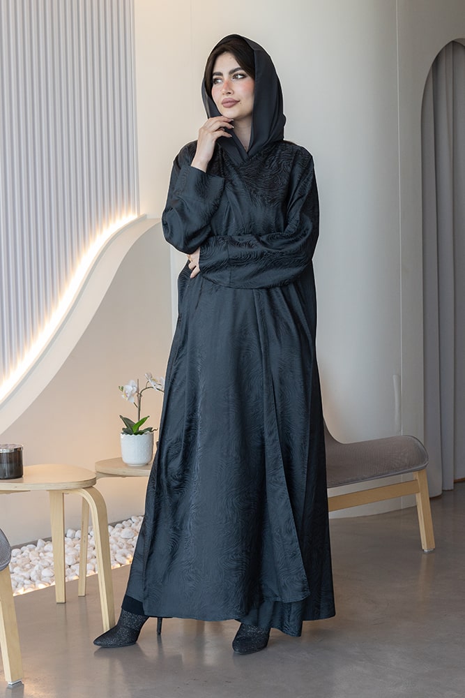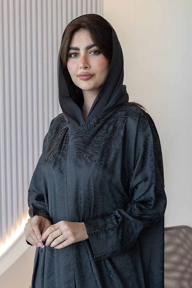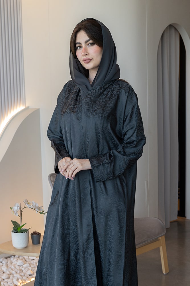 عباية بقماش جاكار رصاصي مع الطرحه
