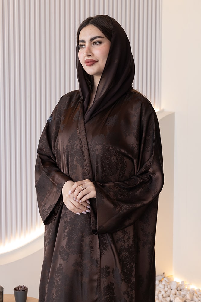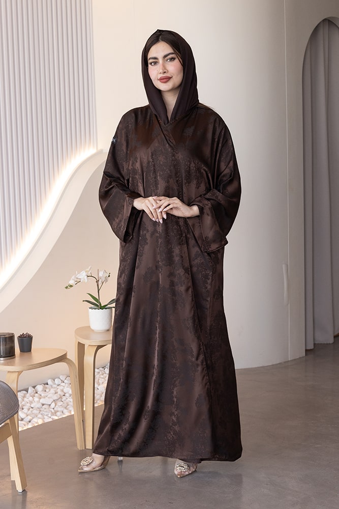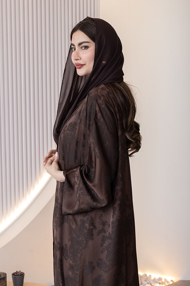 عبايه بقماش جاكار بني مع الطرحه