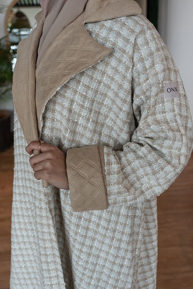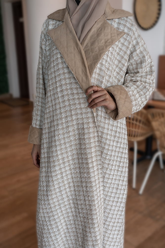 عباية صوف بيج متوفرة باللون الأسود