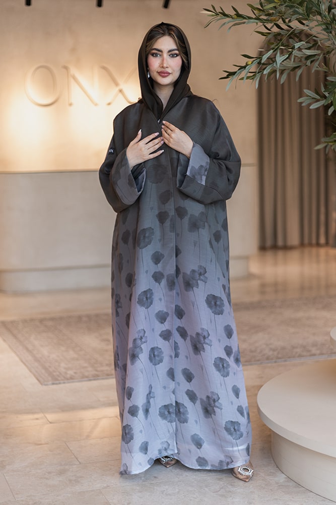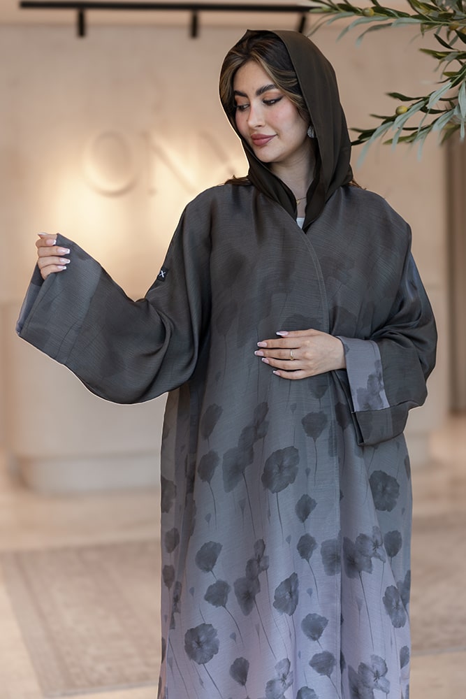 عباية بقماش اورجنزا باللون الرصاصي مع الطرحه