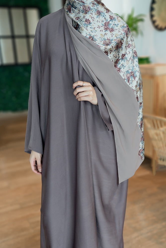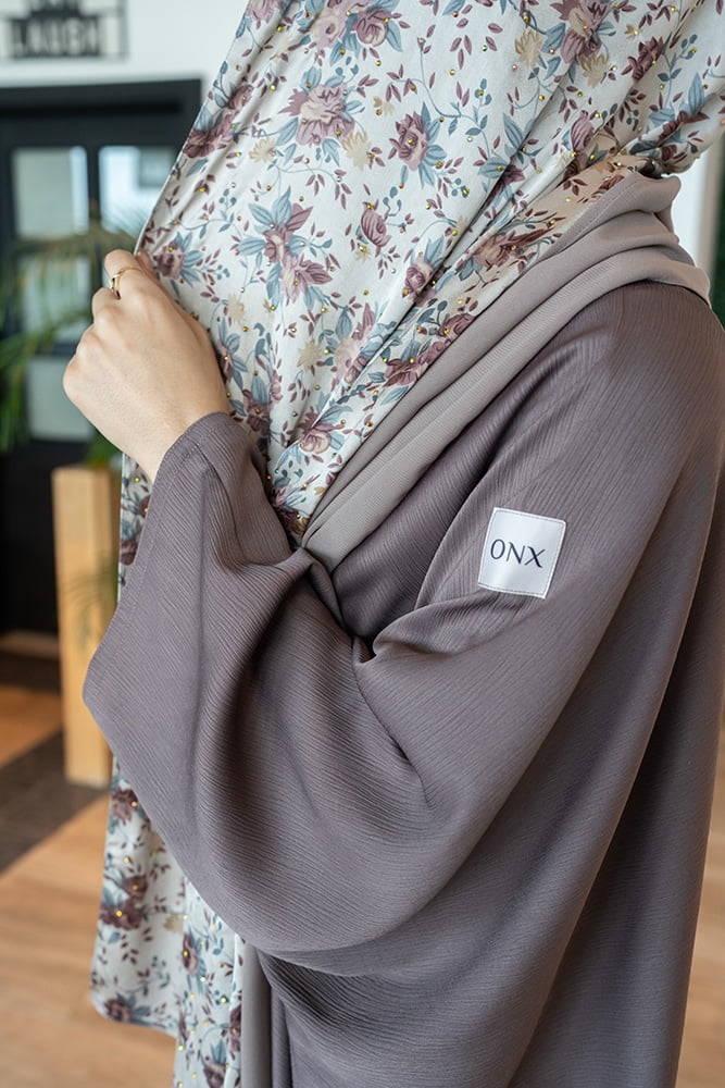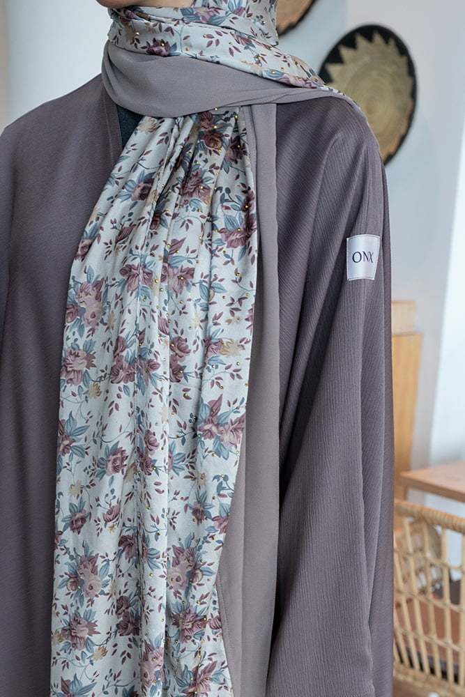عبايه بلون البصلي مع شيله نصف منقشه و نصف ساده