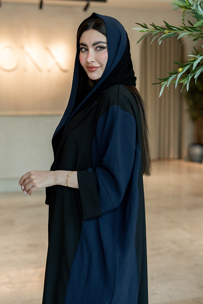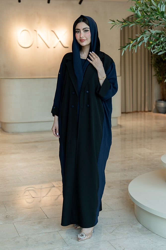 عباية بقماش كريب أسود وكحلي مع الطرحه