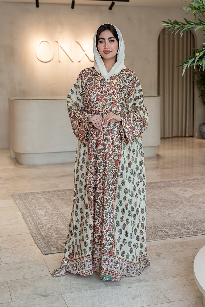 عباية بقماش لينين طبيعي مع الطرحه