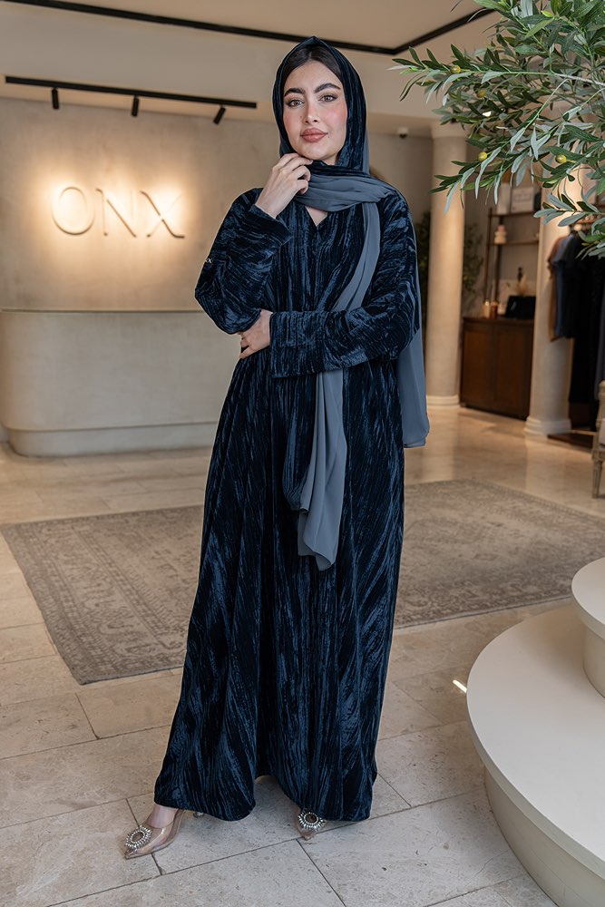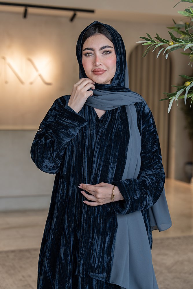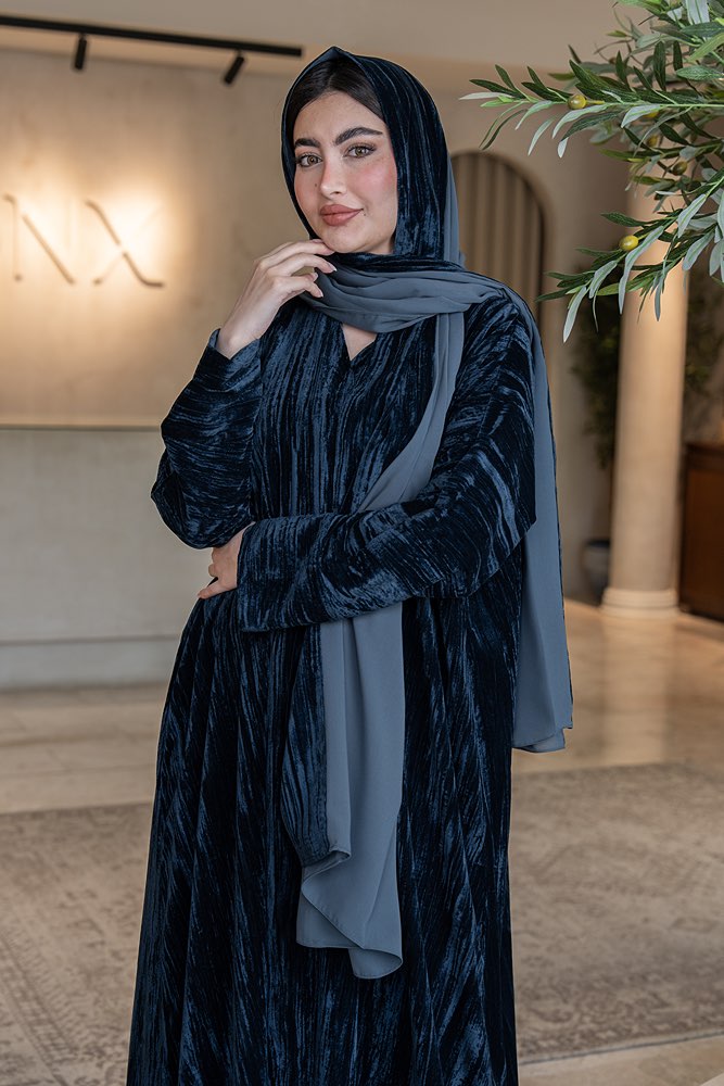 عباية بقماش مخمل كحلي مع الطرحه