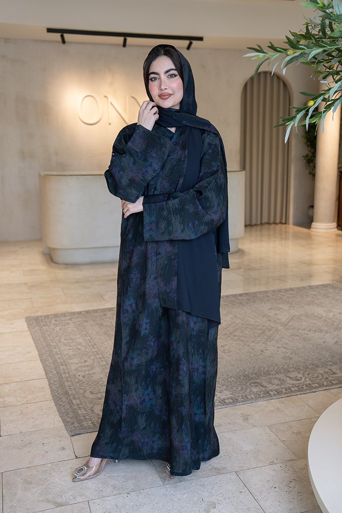 عباية بقماش فرنسي فاخر متعدد الألوان مع الطرحه