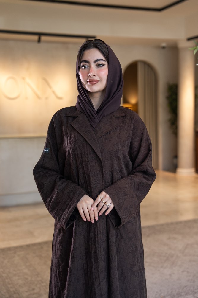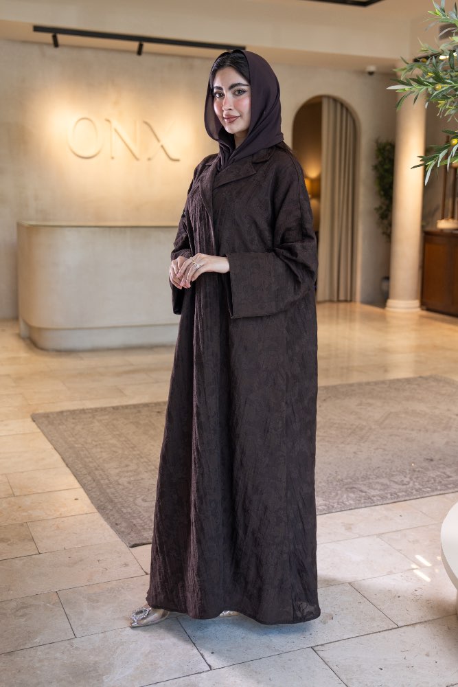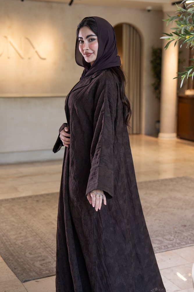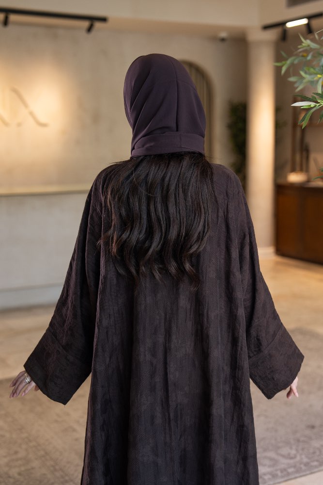 عباية بقماش جاكار بني مع الطرحه
