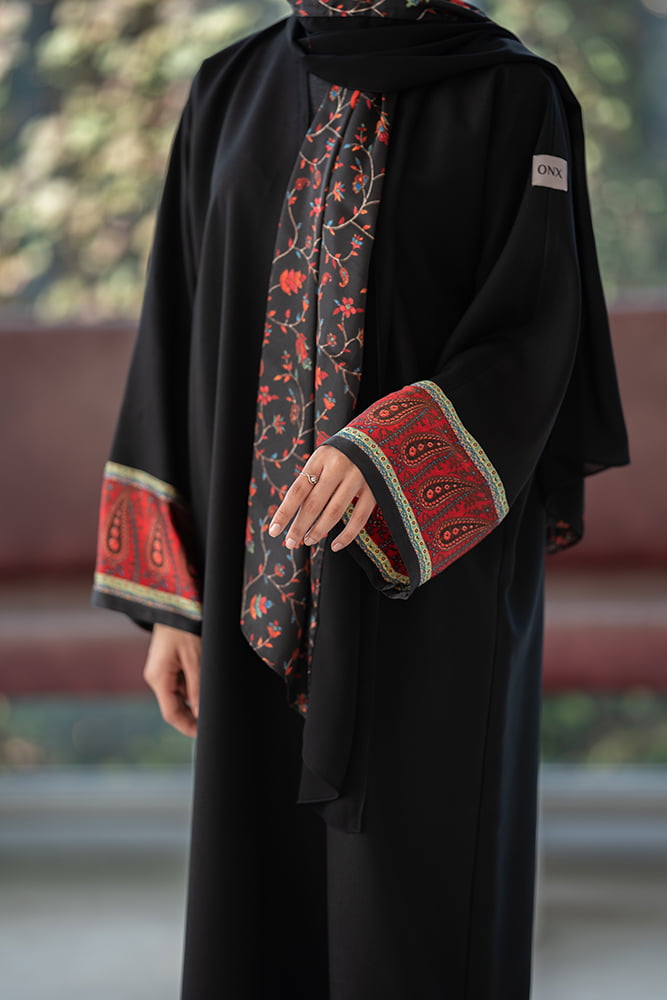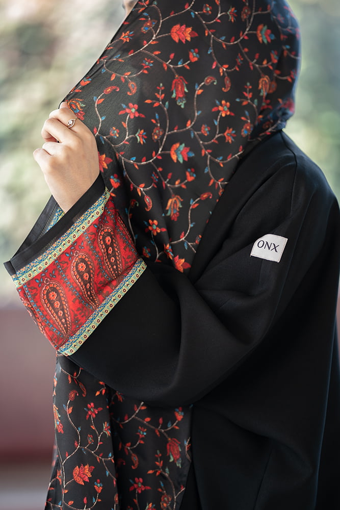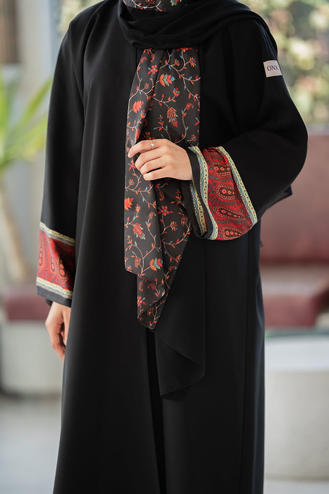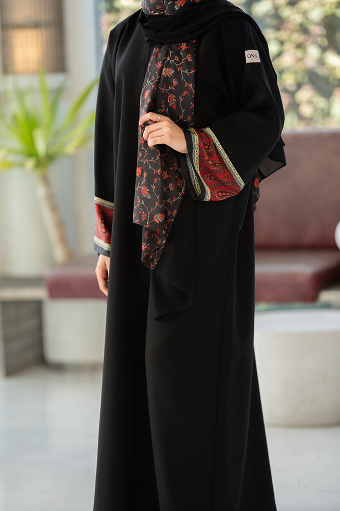عباية كريب أسود مع تركيبه حرير في الاكمام و الطرحه