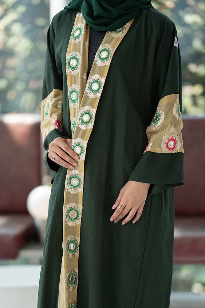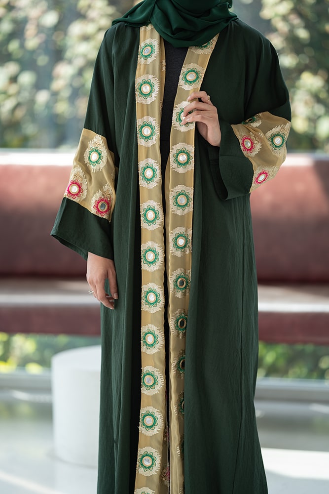 عباية رمضانيه بقماش كريب زيتي مع تركيبه في الأكمام و الخلف