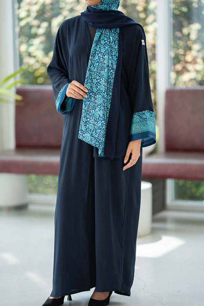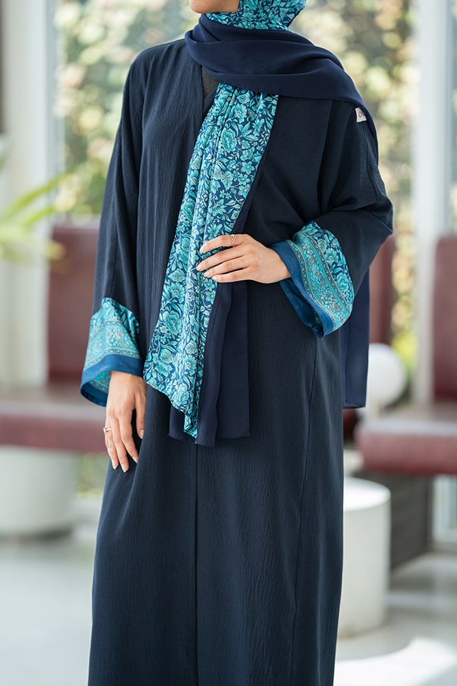 عباية كريب كحليه مع تركيبه حرير في الاكمام و الطرحه